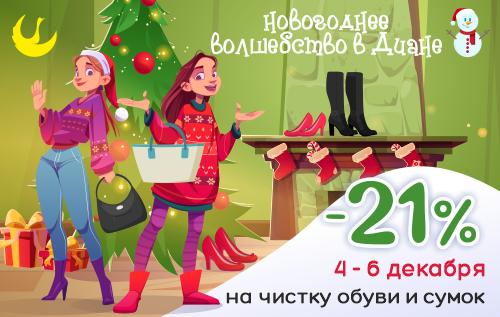 С 04 по 06 декабря скидка 21% на чистку обуви и сумок
