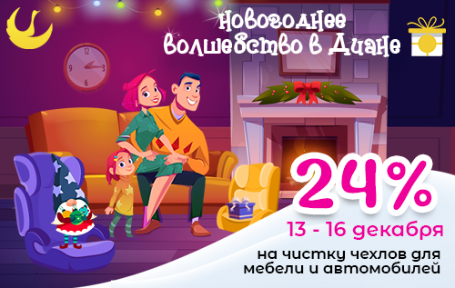 С 13 по 16 декабря скидка 24% на чистку чехлов для мебели и автомобилей